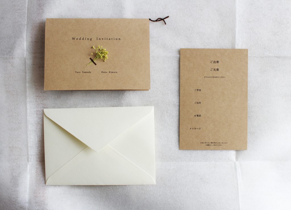 《招待状+席次表+席札》かすみ草 Wedding 2025.03.112025.05.29 《招待状+席次表+席札》かすみ草 緑色のかすみ草のプリザーブドフラワーを一枚一枚付けており、シンプル×ナチュラルなデザインとなります。紙は厚みのあるクラフト紙を使用しています。 販売サイト minne creema