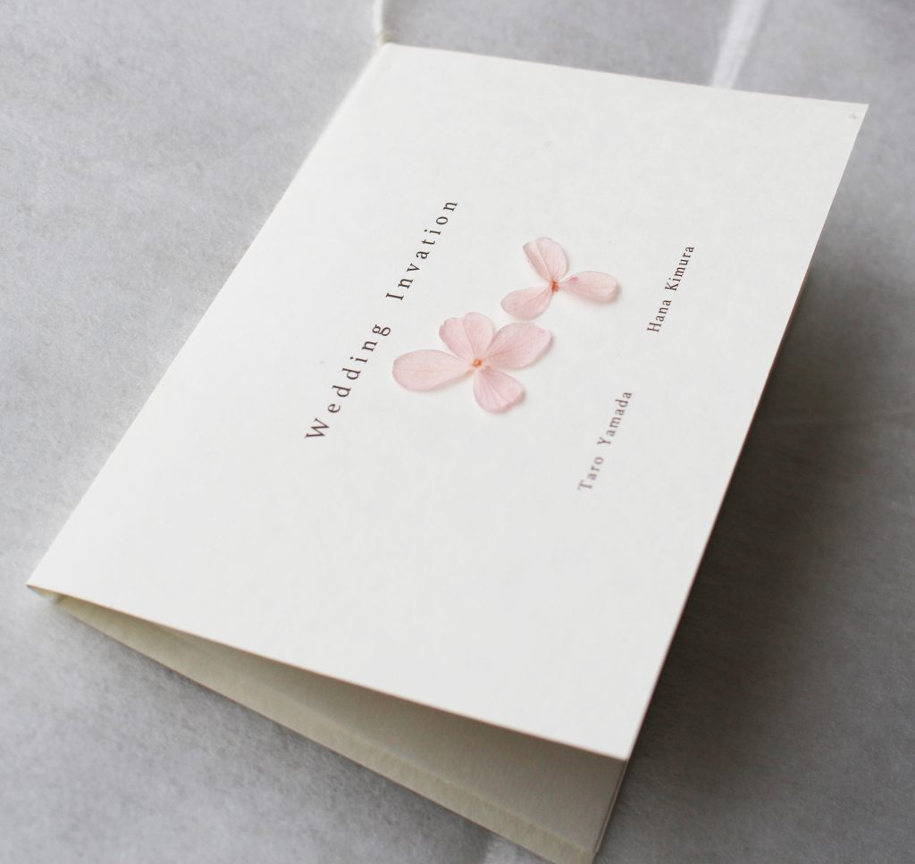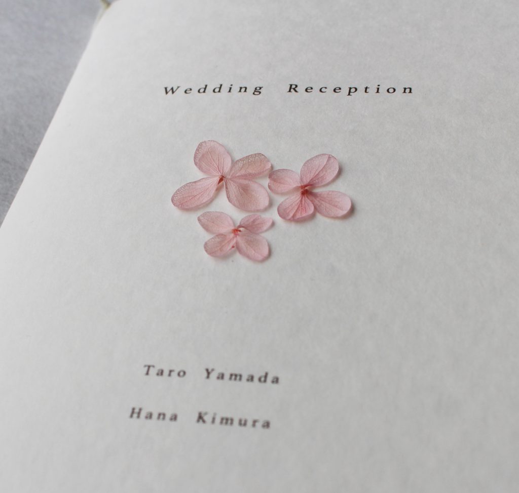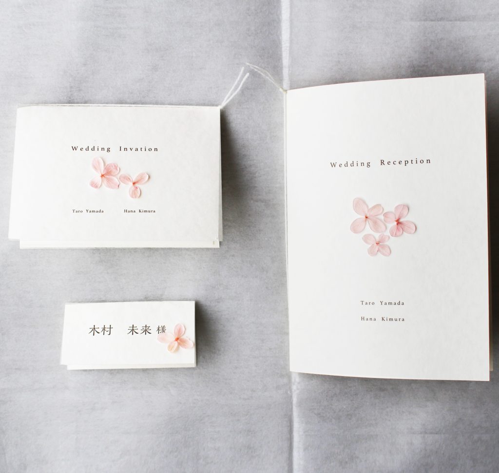 《招待状+席次表+席札》桜 Wedding 2025.01.292025.05.29 《招待状+席次表+席札》桜 桜色の紫陽花プリザーブドフラワーを一枚一枚付けており、春らしいデザインとなっております。春の結婚式にいかがでしょうか。 販売サイト minne creema
